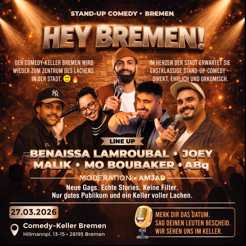 Merkt euch den 27.03.2027 – denn der Comedy-Keller Bremen wird wieder zur Lachzentrale der Stadt 😄🔥